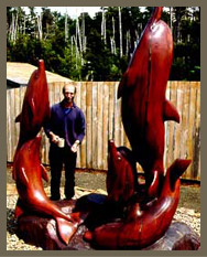 When Brian started carving, he did the whole gamut of chainsaw art from bears, eagles, owls, salmon and sea captains to cowboys, indians and totem poles. In the mid 80s, he began carving sea life. Although he still carves the occasional bear and other animals, his main body of work has been marine animals because of their shapes and fluidity.